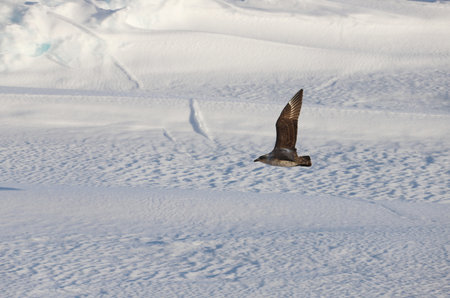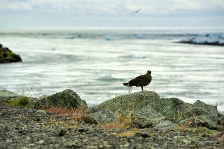 a bird skua at the coast of Jokulsarlon Glacier Lake, Iceland