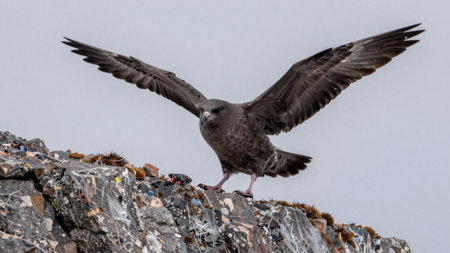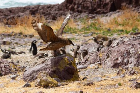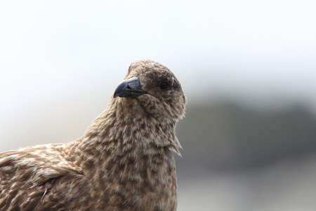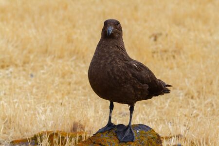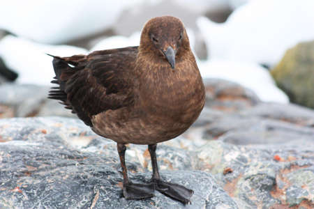 South Polar Skua portrait sitting on the rock islands of the Antarctic summer.