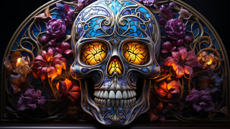 Halloween or day of the dead concept. Accessory in the form of a coloring human skull. Generative AI