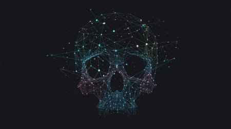 AI Generated. skull composed of numbers with bit effect black background