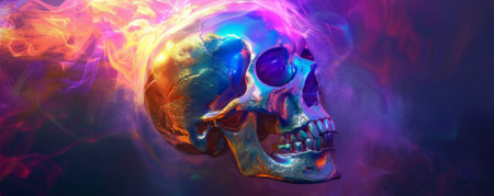 Iridescent skull with vibrant neon flames