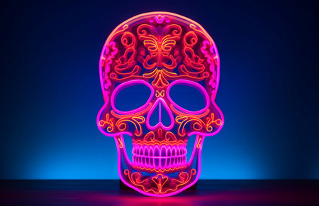 Translucent Skull neon light. Head horror. Generate Ai