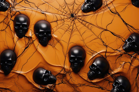 halloween concept - black dark skull spiders