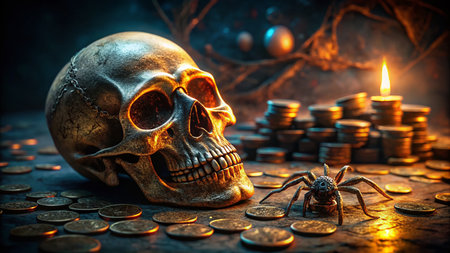 Still Life Skull Spider Coins Dark Gothic Mystery Photography