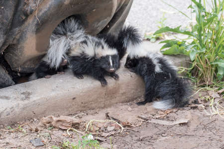 Young Striped Skunk (Mephitis mephitis) in farm.