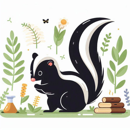 Illustration of a cute little skunk on a white background.