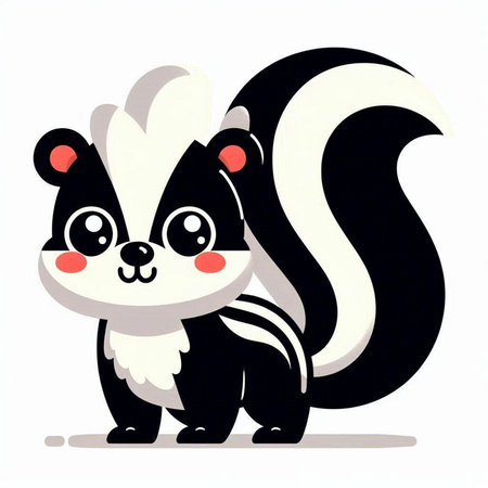 Cute skunk cartoon character. Vector illustration isolated on white background.