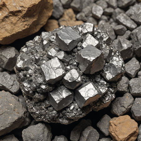 Shiny Platinum Ore Nuggets in Natural Light Mineral Mining Concept