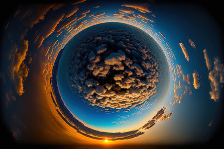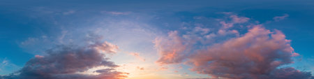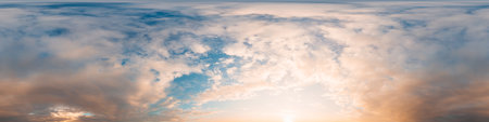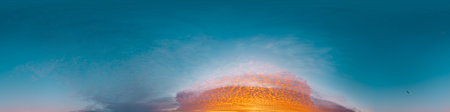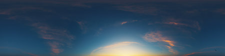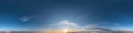 sunset in a deep blue sky with clouds Continuous panorama in spherical equirectangular format with full zenith for usage in games aerial drone 360 degree panoramas and composites