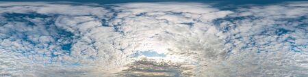 dark blue sky before sunset with beautiful awesome clouds. Seamless hdri panorama 360 degrees angle view with zenith for use in 3d graphics or game development as sky dome or edit drone shot