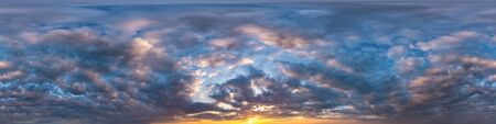 dark blue sky before sunset with beautiful clouds. Seamless hdri panorama 360 degrees angle view with zenith for use in 3d graphics or game development as sky dome or edit drone shot