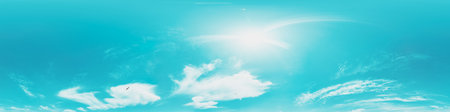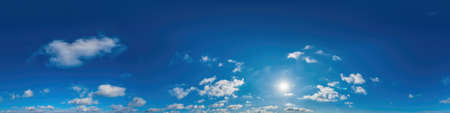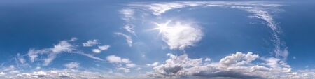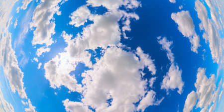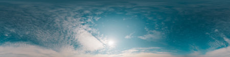 Sky 360 panorama - Bright blue sky filled with fluffy white Cirrus clouds. Seamless hdr spherical 360 panorama. Sky dome, sky replacement for aerial drone 360 panoramas. Weather and climate change
