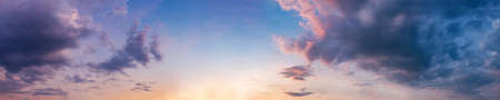 Dramatic panorama sky with cloud on sunrise and sunset time. Panoramic image.