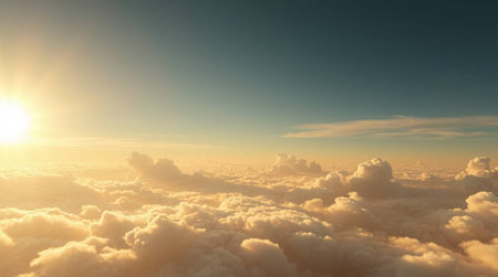 Experience the calming beauty of a vast sky filled with soft white clouds illuminated by warm sunlight, evoking serenity and wonder in nature.