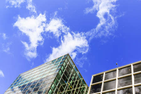 Modern building facede with rectangle and square windows form with clear blue sky with cloud in Sapporo at Hokkaido, Japan.
