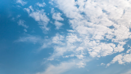 beautiful blue sky background with white soft clouds with copy space in a sunny day