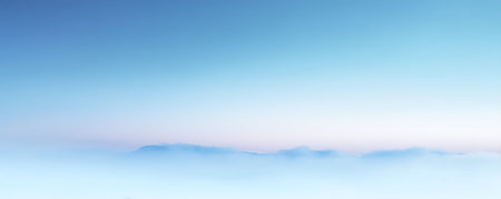 A creative digital illustration depicting Horizon gradient digital wallpaper art from indigo to dawn pink, misty horizon line, peaceful dawn vibe, golden hour soft light, commercial art style. This AI-generated artwork features unique visual elements suitable for various commercial and editorial applications. AI-generated illustration.