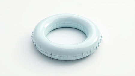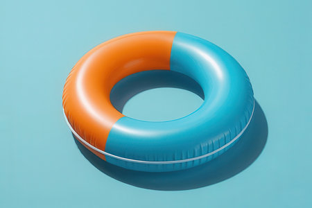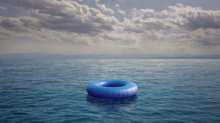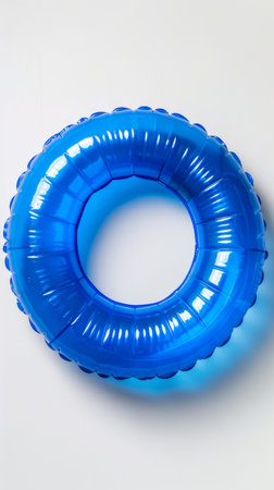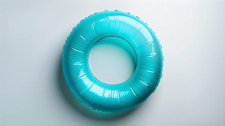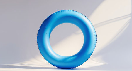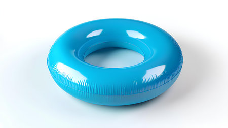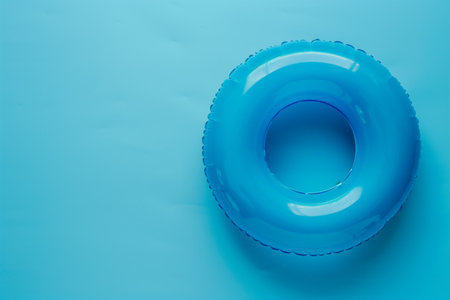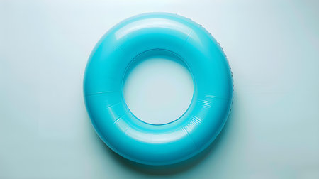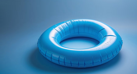 AI Generated. Bright blue inflatable pool ring resting on a solid blue background in a serene and calm setting
