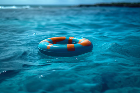swim ring floating on beautiful blue lake