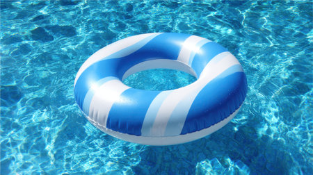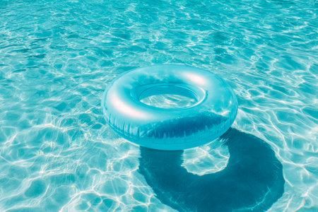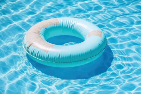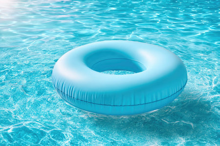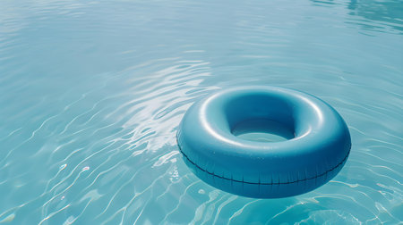 AI Generated. Blue Circular Swimming Float Ring for Pool Fun and Water Activities during Summer Season Adventures