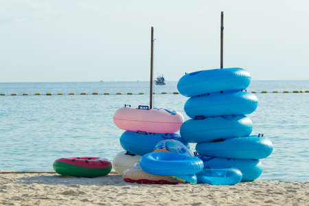 Rubber rings stacked at the beach.
