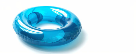 Cyan inflatable ring on a white background with copy space