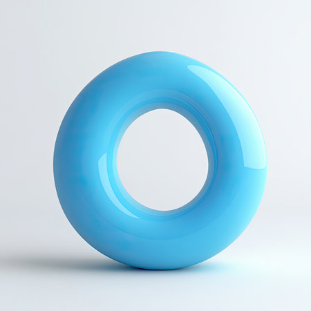 Blue torus shape, minimalist background, studio shot, graphic design element
