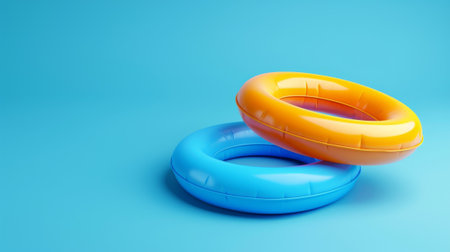 Colorful inflatable rings on light blue background