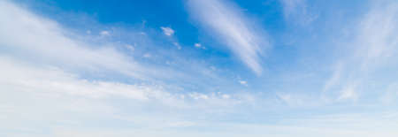 Panoramic view of the blue sky. Blue sky with clouds. Summer sunny day. Abstract as background.
