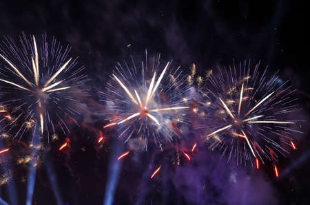 Colorful fireworks of various colors over night sky. Celebration concept.