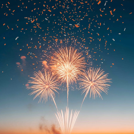 Happy new year fireworks confetti background images collections cute wallpapers ai generated
