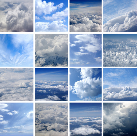Collage made of many cloudscapes shoots