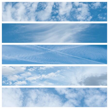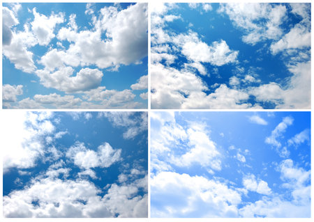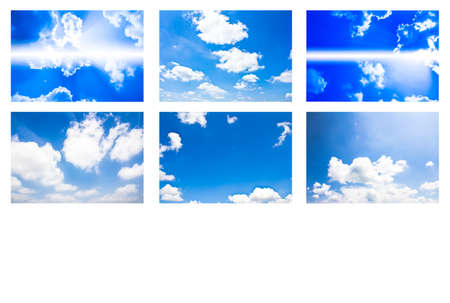 Collection of blue sky with thick clouds on a sunny day.