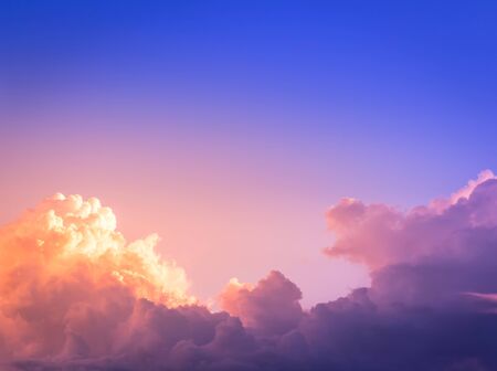 Beautiful twilight sunset sky and cloud at summer background image. New heaven light and earth concept. Dramatic sun ray with blue orange sky and pink purple clouds dawn texture color background