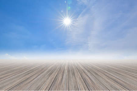 Plank wood with blure blue sky background : Suitable use for montage your product.