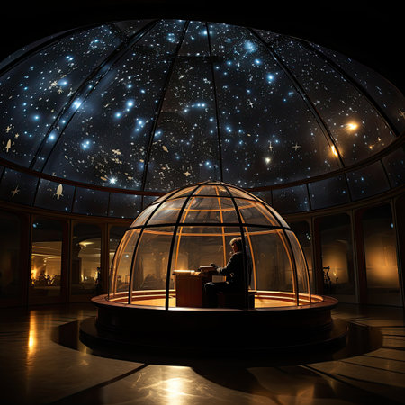 A planetarium dome illuminated with a projection of distant galaxies.