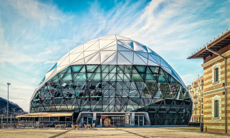 Krakow, Poland 2020.02.18: Kemi-circular buildings with round Windows and transparent passages. Planet exhibition complex or education park is exceptional place.