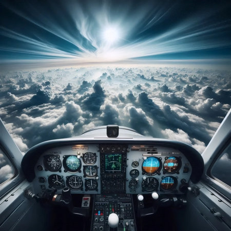 Pilot navigates complex flight data with advanced augmented reality in modern cockpit