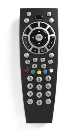 Black remote control for tv on a white background