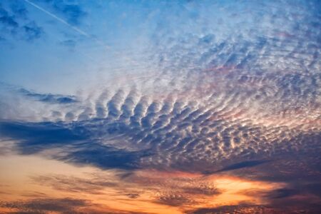 Cirrocumulus clouds sunset sky landscape at dusk