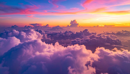 A breathtaking view of a sunset sky filled with soft clouds and vibrant colors, capturing the tranquil beauty of nature during twilight hours.