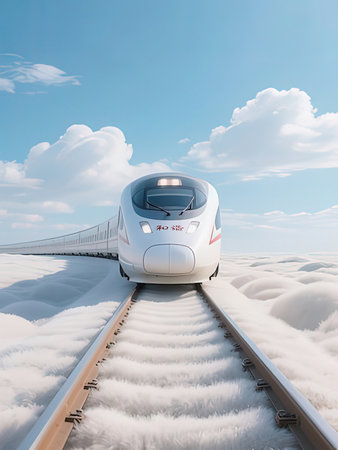 3d model of futuristic passenger train on the bridge. Very fast driving. Future concept. 3d rendering.