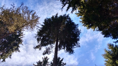 The tall tree is sky-high.