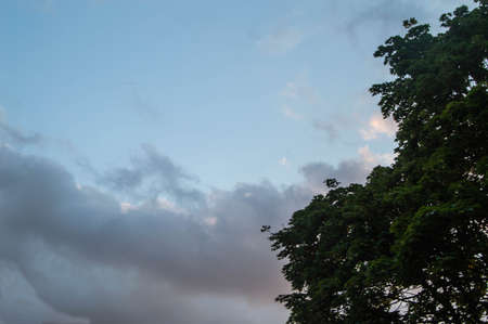 Clouds in blue sky with tree silhouette, Nature background