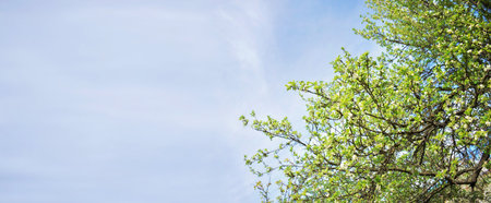 The flowering season of trees and grasses can cause allergies. Spring. Sunny day. Gardening. Allergy. Pollen. Green natural banner. Spring meadow and garden. background for ecology and health