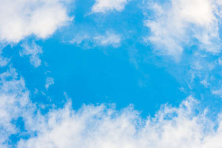 Beautiful white fluffy clouds with blue sky background, nature weather.