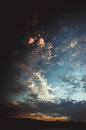 Beautiful blue sky with white clouds and vivid colors at sunset without horizon, background image