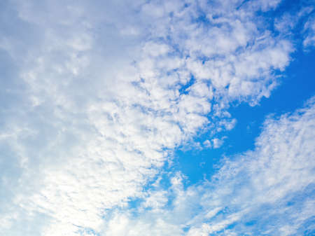Cloudscape of white stratocumulus clouds on blue sky. Full Frame of white fluffy clouds texture background. Heaven sky with daylight. Beauty in nature. Summer sky. Pure white clouds. Freedom concept.