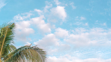BANNER Atmosphere panorama white cloud sky alone tropical palm background summer tenderness freedom