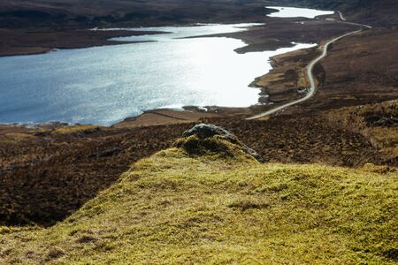 Small lake on the mountains and of Scottish Highlands. Scenic Landscape View of Mountain